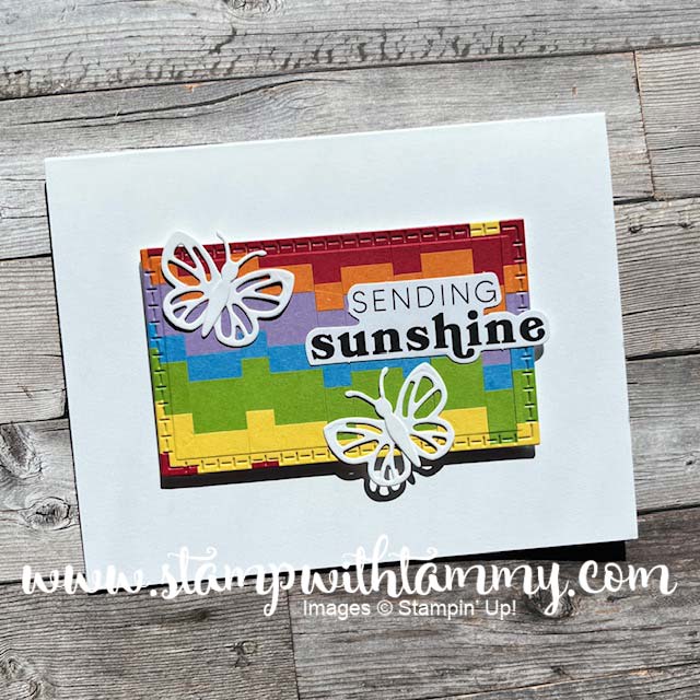 This card was made with a rainbow of colors, topped off with a white butterfly!