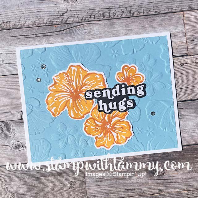 What a GREAT color combo we have for you today at Color Dare!! I used Balmy Blue, Daffodil Delight and Pumpkin Pie. This was super easy to put together! I stamped the Hibiscus Flowers