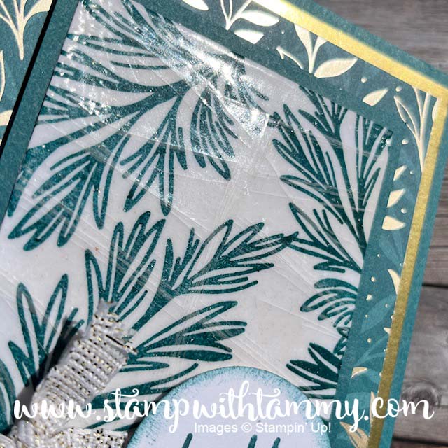 Basically, you stamp a panel–whatever you’d like! Then, you smoosh Versamark ink all over the panel, add Clear Embossing Powder, heat and repeat! You want 3-4 layers of embossing. I didn’t put mine in the freezer like we used to do ages ago–and my sample turned out okay. But, when we did this at my Stamp Club, the ladies had varied results. So, if you try this–after all the embossing, stick it in your freezer for. 15 minutes or so, and then “crack” it!