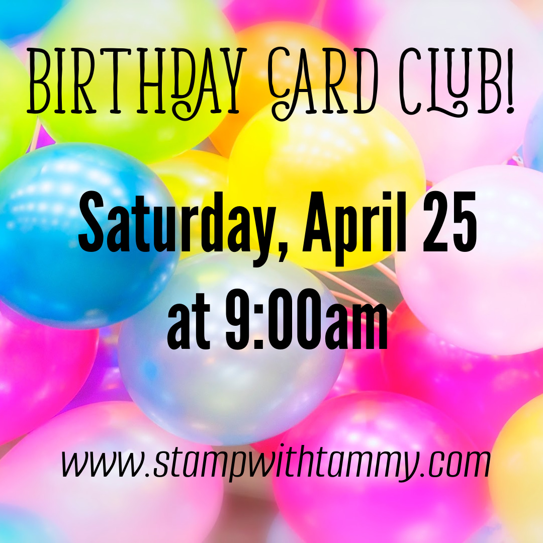 Hi!! I’ve been a bit behind with my posts!! We held our March Birthday Club yesterday, and I haven’t even posted the cards from February yet! So, here ya go!! I have one more Birthday Card Class scheduled for April 25th at 9am — click HERE to register today!! We make 9 cards – 3 each of 3 designs! Great way to stock up for the year!!