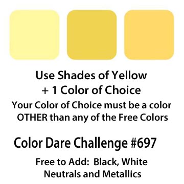 Hi all! Thanks for stopping by! There’s a new color combo at Color Dare this morning! Shades of Yellow, plus one other color. I chose Lemon Lolly and Soft Sea Foam for this fun card!