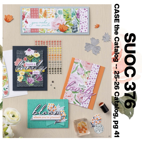 Hello, you beautiful person!! Today’s card was created for the new challenge at SUO Challenges! The challenge is to CASE a card from page 25-26 of the NEW 25-26 Stampin’ Up! Annual Catalog! I chose the “Hello Lovely” card!