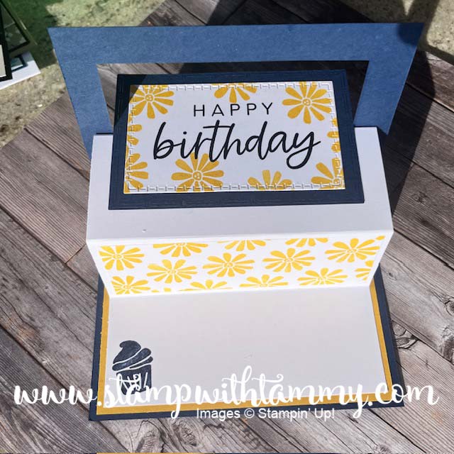 This is a fun fold–but I’m not sure what it’s called! It’s pretty cool though! Most of the cards I’ve seen are vertical, but I really wanted to use the With You in Mind Stamp Set, and it didn’t fit vertically!